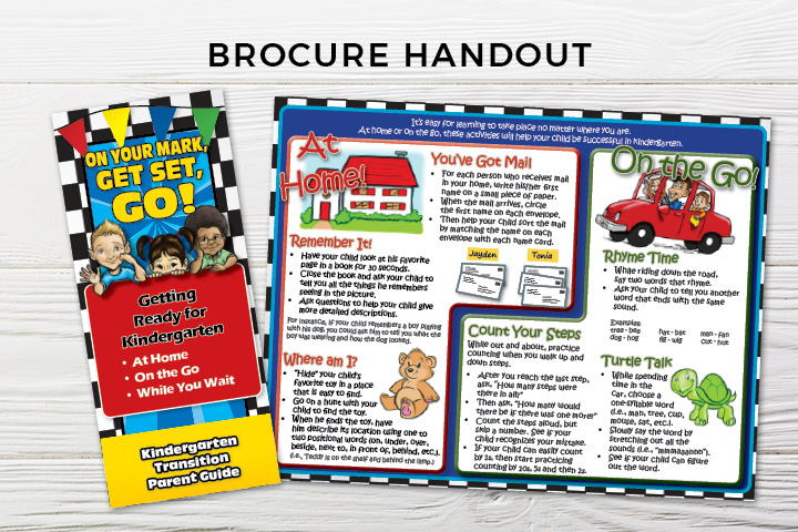 On your mark, get ready, go! Rising kindergarteners and their families will enjoy the all inclusive, fun-filled Spectacular School Race: Transition to Kindergarten kit. With this fast-paced family engagement and orientation event, families are introduced to the new school setting, teachers, and staff in a non-threatening atmosphere. Hoping to be the first to cross the finish line, families “race” around the school in friendly competition, work together to complete academic challenges, and get excited for the new year! All families go home with a Transition to Kindergarten Handout that helps parents turn everyday activities into school readiness opportunities.